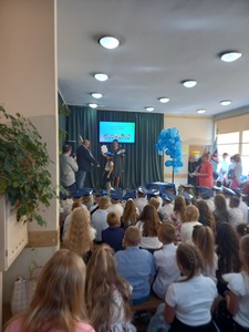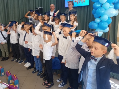 Dzisiaj przy pięknej słonecznej pogodzie cała społeczność uczniowska, nauczyciele oraz zgromadzeni goście powitali nowy rok szkolny 2022/ 2023. Pan Dyrektor Piotr Matysiak ślubował 24 pierwszoklasistów na uczniów naszej szkoły. Padło mnóstwo życzliwych, ciepłych słów. Nasi uczniowie wrócili uśmiechnięci, opaleni i pełni zapału do pracy. Życzymy sobie wszyscy sukcesów i uśmiechu, który sprawi, że szkoła będzie miejscem przyjaznym, w którym spełniają się marzenia !!!