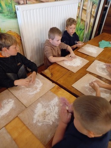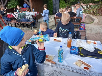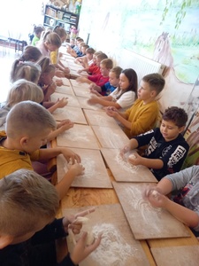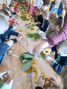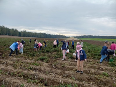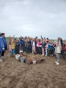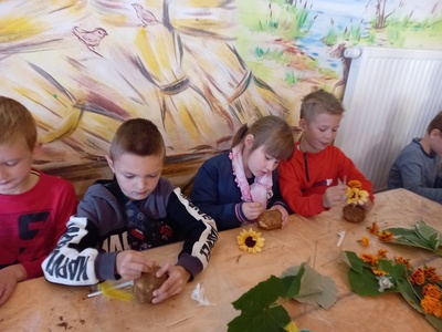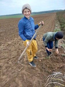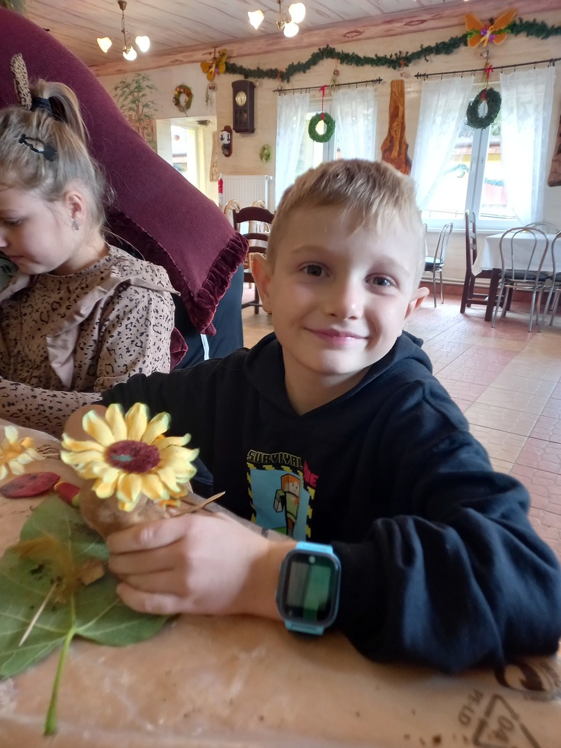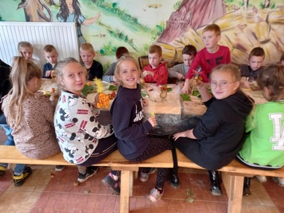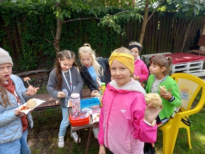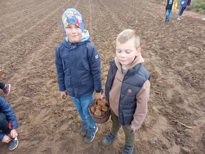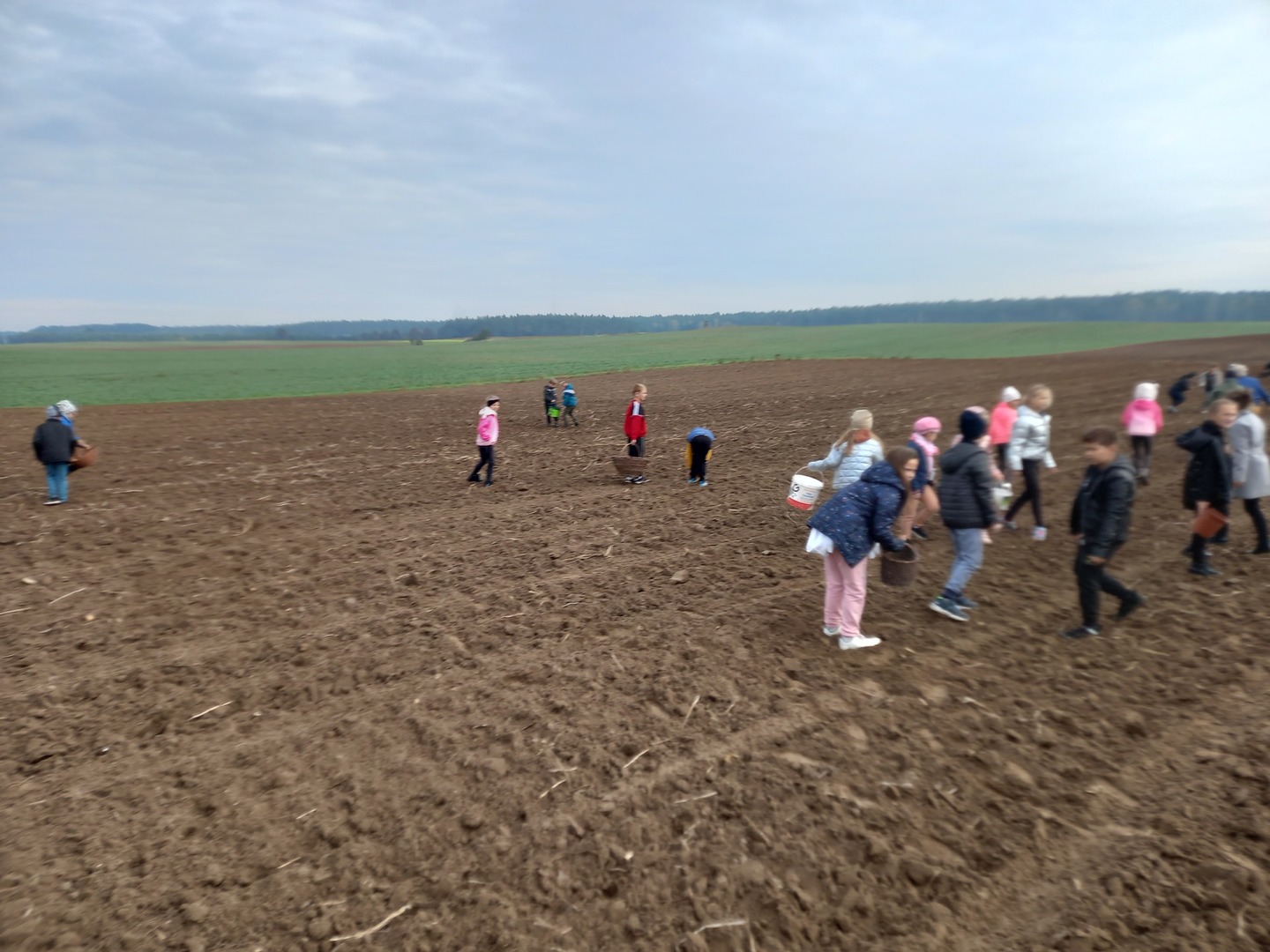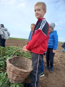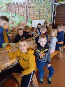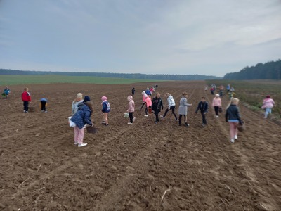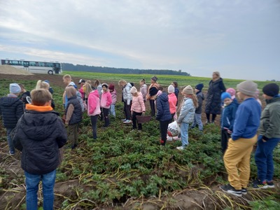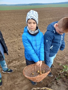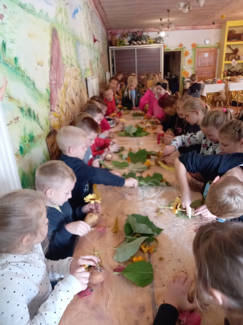 W słoneczny piątkowy poranek wybralismy się na wycieczkę do Gąsawy, aby świętować Dzień Pieczonego Ziemniaka. Uczestniczyliśmy w prawdziwych wykopkach i uzbieraliśmy pełne koszyki ziemniaczanych skarbów, z których później w części warsztatowej robiliśmy nasze Ziemniaki-Cudaki. Wyrabialiśmy własnoręcznie ciasto na pyszne bułeczki, karmiliśmy zwierzęta i jedliśmy tradycyjną wielkopolską pyrę z gzikiem. Znaleźliśmy również czas na ruch na świeżym powietrzu. Dobrą zabawę połączyliśmy z lekcją w terenie na temat roślin okopowych i budowy jej przedstawiciela - ziemniaka. To był dobrze wykorzystany czas !!!