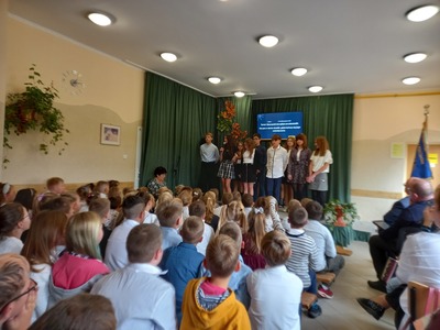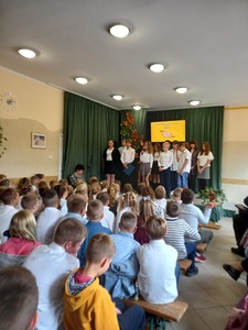Młodzi artyści piosenkami i słowem uświetnili ten wyjątkowy dzień w roku szkolnym.