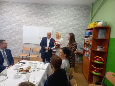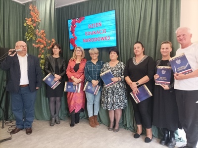 W kolejnej części uroczystości Dyrektor przekazał głos panu Arturowi Hańczakowi –Wójtowi Gminy Mieleszyn, który złożył życzenia wszystkim pracownikom oświaty.