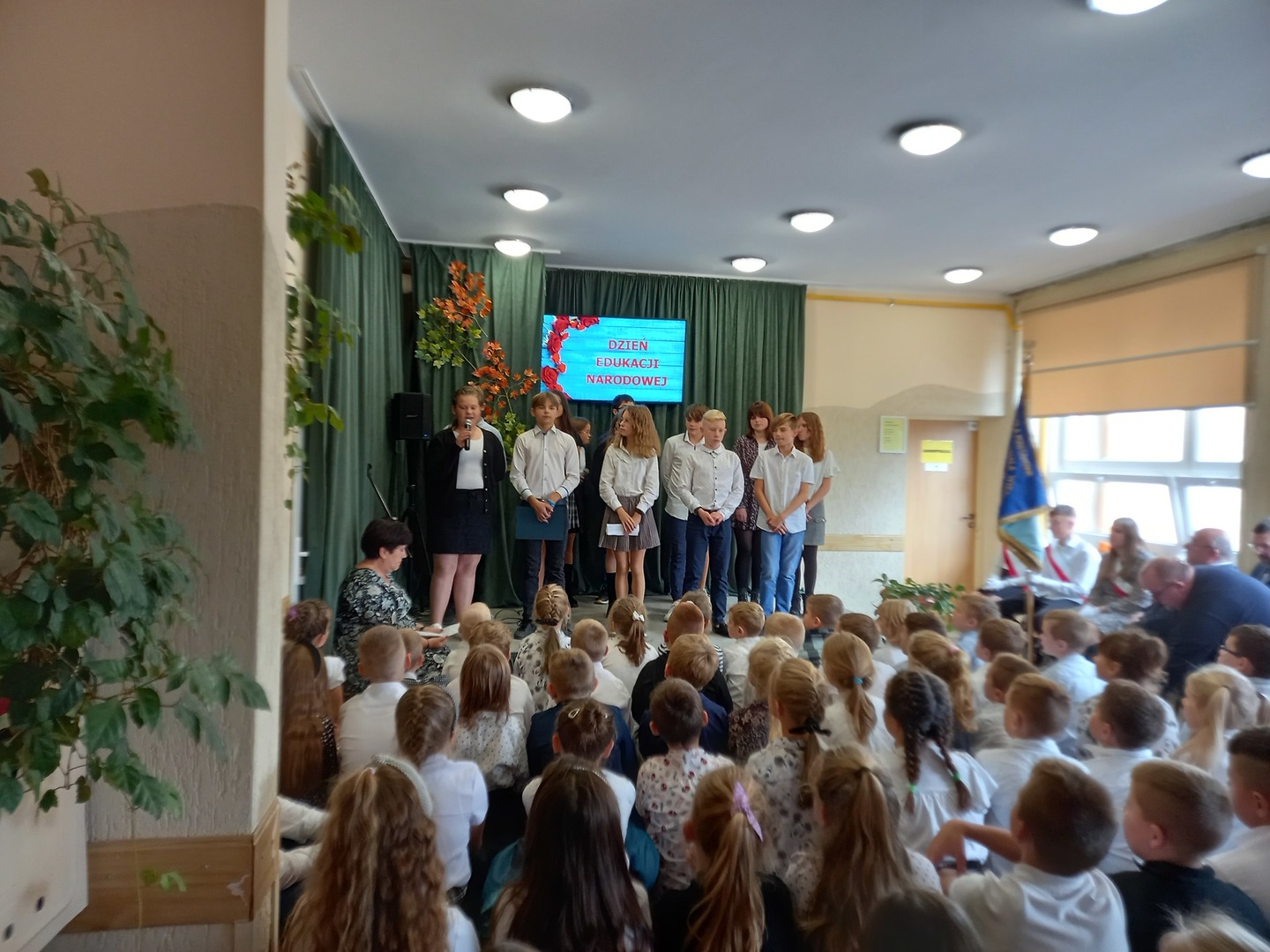 Dnia 12.10.2022 r. w Szkole Podstawowej w Mieleszynie odbyła się akademia z okazji Dnia Edukacji Narodowej. Uroczystość rozpoczęła się od wystąpienia Pana Dyrektora Piotra Matysiaka, który przywitał pana Wójta, wszystkich nauczycieli, pracowników szkoły i przedstawicieli Rady Rodziców. Następnie mówił o trudnej, ale jakże pięknej pracy nauczyciela. Podziękował za dotychczasowe zaangażowanie oraz życzył wielu sił i wytrwałości w tym wyjątkowym zawodzie.