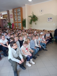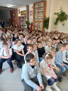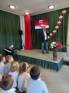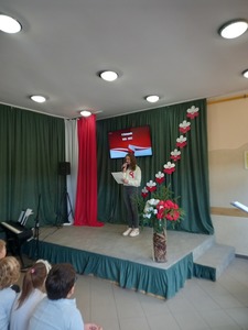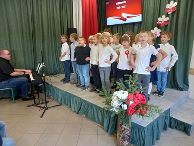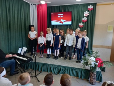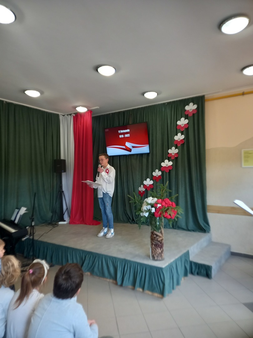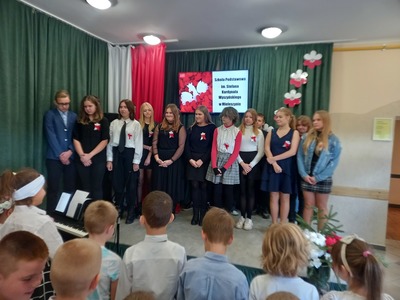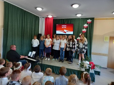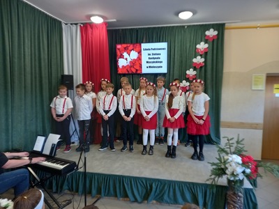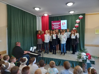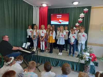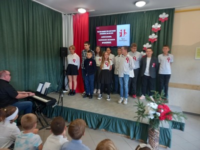 10 listopada nasza szkoła uczciła 104. rocznicę odzyskania niepodległości przez Polskę. Przedstawiciele klasy 7. poprowadzili uroczysty apel, podczas którego wspólnie przeżyliśmy historię Polski, opisaną w pieśniach i piosenkach patriotycznych. Każda klasa wykonała jeden utwór. Wybrzmiały: Warszawianka, Rota, Hej , hej ułani, Pierwsza Kadrowa, Przybyli ułani pod okienko, O mój rozmarynie, Szara Piechota i Pierwsza Brygada. Wszystkim udzielił się podniosły i radosny nastrój. Miejmy nadzieje, że rola pieśni patriotycznych ograniczy się w przyszłości tylko do nauki miłości ojczyzny i świadectwa bohaterstwa naszych rodaków, a my spotkamy się za rok na kolejnym patriotycznym śpiewaniu.