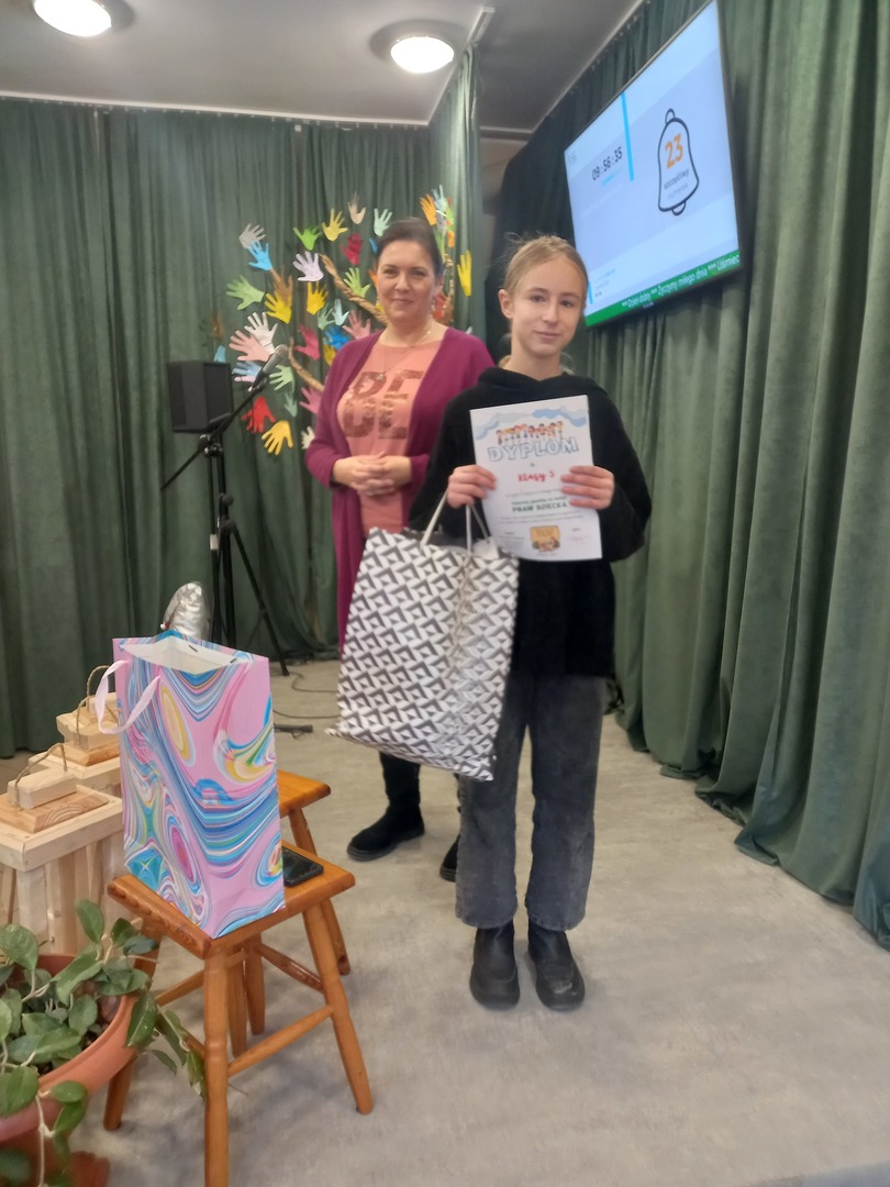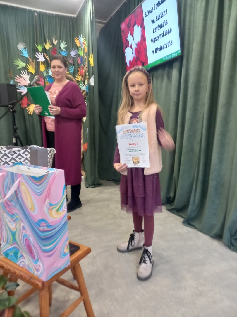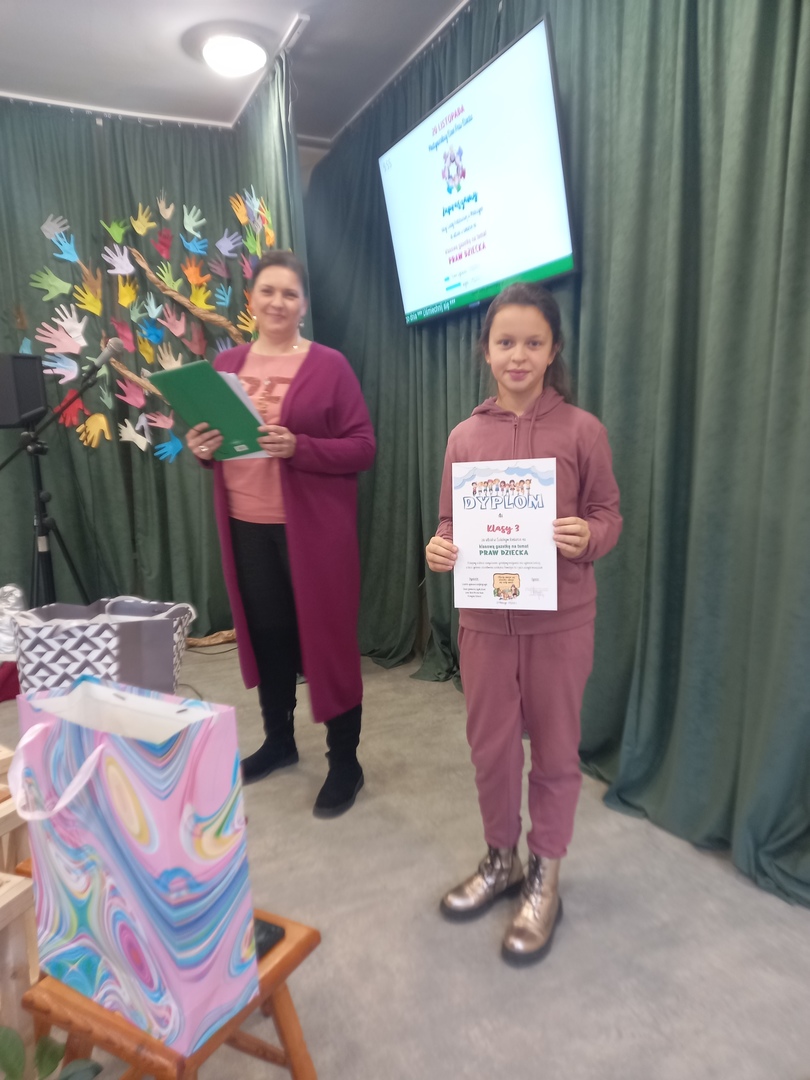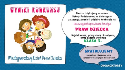 Uczniowie dowiedzieli się nie tylko o prawach dziecka ale też i o obowiązkach. Wzięli ponadto udział w szkolnym konkursie na klasową gazetkę poświęconą prawom dziecka i podczas apelu nastąpiło uroczyste rozstrzygnięcie konkursu. Jury postanowiło przyznać 1 miejsce klasie 5, w której wszyscy uczniowie wraz z wychowawcą zaangażowali się w przygotowanie pomysłowej gazetki. Natomiast pozostałe klasy także otrzymały dyplomy za udział w konkursie.
