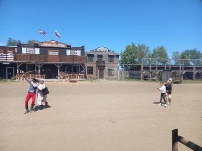 Zobaczyliśmy domek dr Quinn, chatę trapera, saloon, biuro szeryfa, więzienie i odwiedziliśmy kawiarnię w kowbojskim stylu. Oglądaliśmy dwa przedstawienia oraz pokaz rodeo.