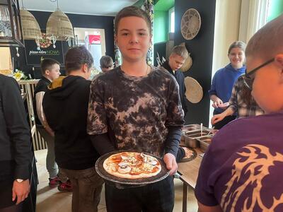 Klasa 6. i 8. wraz z wychowawcami odwiedziły gnieźnieńską Stolicę eXperymentu. Podzieleni na 4 grupy edukacyjne połączyli naukę z zabawą. Budowali roboty z klocków Lego, a następnie uruchamiali je przy pomocy oprogramowania. Odkrywali świat oczami modularnego robota SkriBot. Z zestawu konstrukcyjnego SkritKit udało im się stworzyć w dwuosobowych zespołach słonia, jelenia lub zjeżdżalnię. Odwiedzili też Strefę Odkrywania Wyobraźni i Aktywności, czyli 15 interesujących eksponatów z Centrum Nauki Kopernik, ukazujących doświadczalny charakter nauki. Nasi uczniowie poznali świat nauki w praktyczny i kreatywny sposób. Następnym punktem wycieczki była wizyta w Pizzerni Retro Nowa w Gnieźnie, gdzie szef kuchni zapoznał wszystkich z historią wyrabiania pizzy, po czym każdy uczestnik mógł stworzyć i spożyć swoją własną pizzę. Niewątpliwie nasi uczniowie poszerzyli swoją wiedzę z wielu przedmiotów i kreatywnie spędzili czas