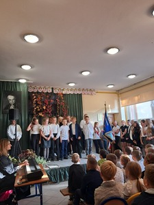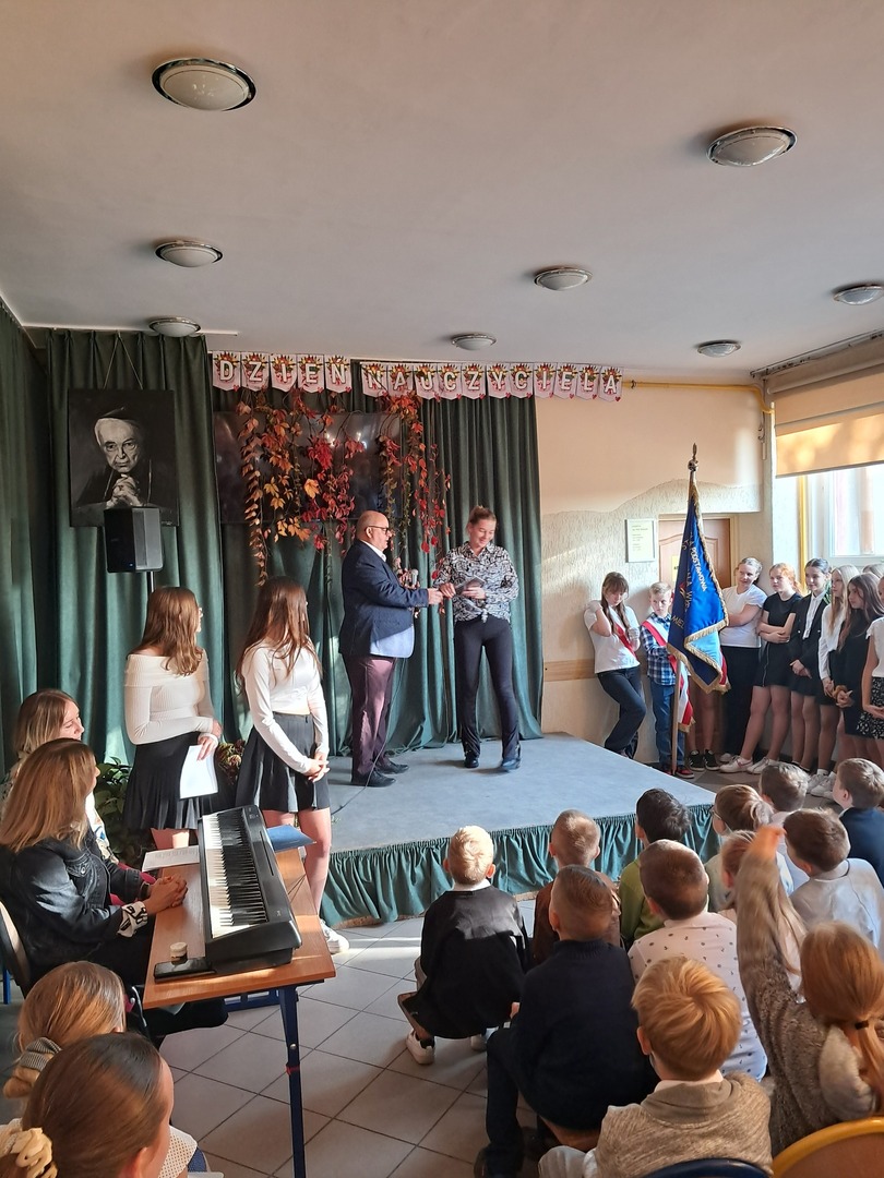 Z okazji Dnia Edukacji Narodowej odbyła się w dniu dzisiejszym uroczysta akademia w naszej szkole. Wydarzenie rozpoczęło się od odśpiewania hymnu państwowego, a następnie dyrektor szkoły pan Piotr Matysiak wygłosił przemówienie, w którym podziękował nauczycielom i pracownikom za ich trud oraz zaangażowanie w edukację młodzieży.