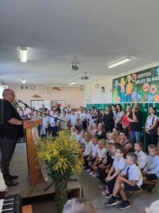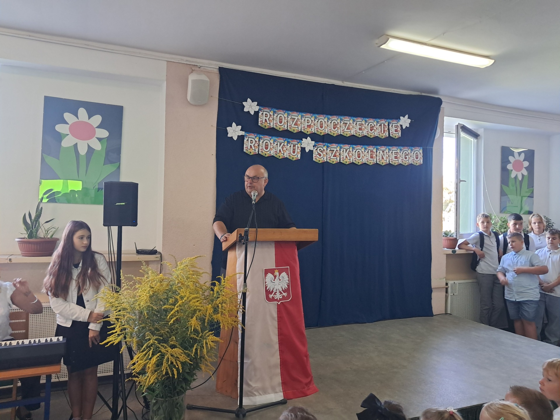 Z radością rozpoczęliśmy nowy rok szkolny, pełni energii i gotowi na kolejne wspólne przygody. Podczas uroczystości mieliśmy zaszczyt gościć wójta gminy Mieleszyn, który skierował do nas ciepłe słowa i życzenia.