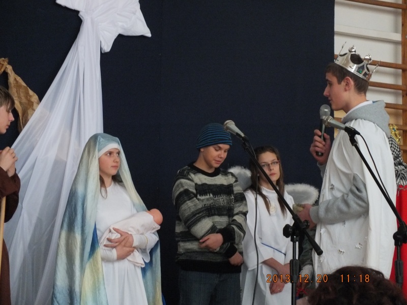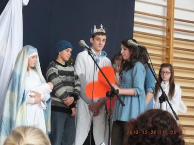 Jasełka odbyły się dnia 20.12.2013r. Każda klasa przygotowała wigilie, na której uczniowie podzielili się opłatkiem i obdarowali się prezentami. Następnie udaliśmy się na salę gimnastyczną, gdzie wspólnie ze Szkołą Podstawową celebrowaliśmy to wyjątkowe wydarzenie.