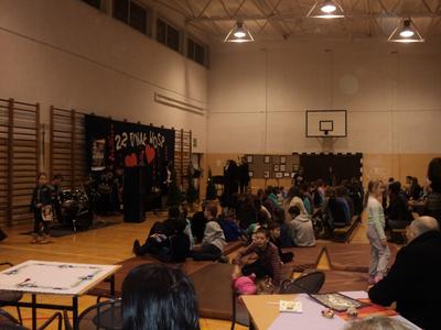 Ponieważ atrakcji przygotowano sporo, więc i zmęczenie dawało swe znaki. Nadwątlone siły można było pokrzepić w orkiestrowej kawiarence – różnorodne ciasta, które upiekły mamy uczniów z SP, smakowały wszystkim.