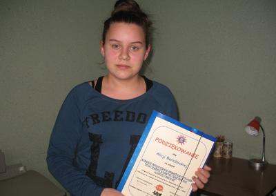 Podziękowanie za udział – Alicja Bereźnicka, kl.1c