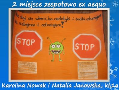 2 miejsce ex aequo - Joanna Mucha i Barbara Hanusko, kl.3b oraz Karolina Nowak i Natalia Janowska, kl.1a