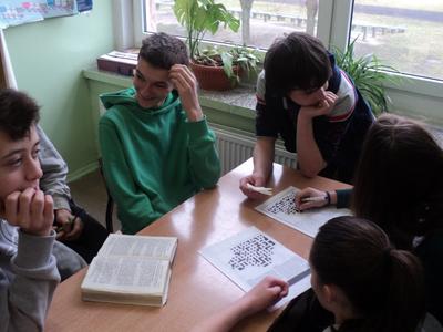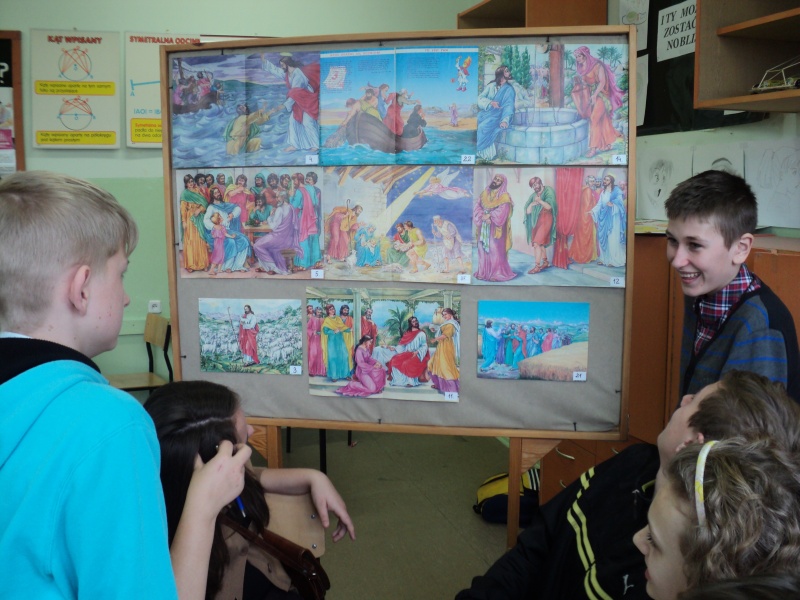 Młodzież rozwiązywała krzyżówki, układała rozsypanki wyrazowe, uzupełniała teksty biblijne, rozpoznawała i opisywała wydarzenia ewangeliczne przedstawione na ilustracjach, a także wykonywała prace plastyczne dotyczące najważniejszych wydarzeń zbawczych.