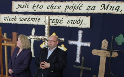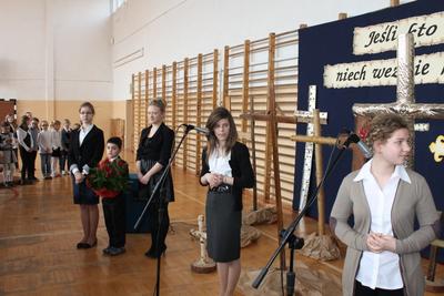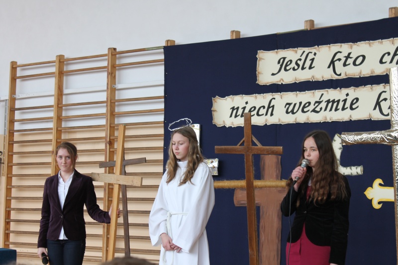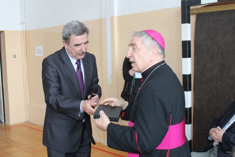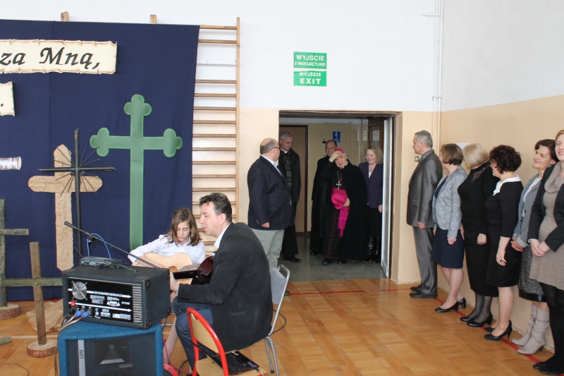 Atmosfera spotkania była jednocześnie bardzo ciepła i uroczysta. Po miłych powitaniach wspólnie obejrzeliśmy krótką refleksyjną inscenizację w wykonaniu uczniów pt. "Ballada o krzyżu". Następnie Ksiądz Prymas nawiązał dialog z całą zgromadzoną społecznością, powspominał nieco swoje szkolne lata i udzielił kilku cennych rad oraz pasterskiego błogosławieństwa.