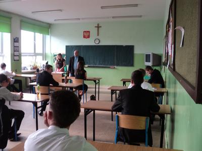 Do części podstawowej musieli przystąpić wszyscy. Jeżeli jednak wybranego języka obcego uczyli się już w szkole podstawowej musieli też napisać część rozszerzoną. Tę opcję wybrało w naszej szkole większość uczniów, gdyż zdawali egzamin z języka angielskiego. Tylko jeden uczeń podjął się pisania testu z języka niemieckiego, dlatego obowiązywała go tylko część podstawowa.